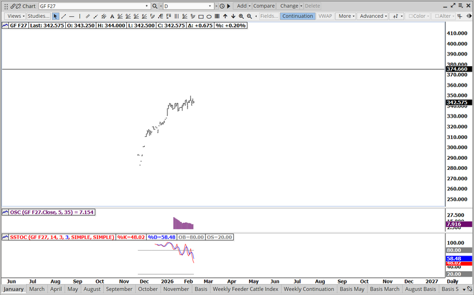 I will be following the same guide line in the feeders as fats. The Moore Research shows a definitive lower seasonal tendency into mid-May, and I anticipate price action to follow closely to the seasonality. As above, the enormous price swings, volatility, basis, and price spreads between contract months, opens wide swaths of price risk that will either be managed, or not. If you are going to manage the risk, then we can help you.